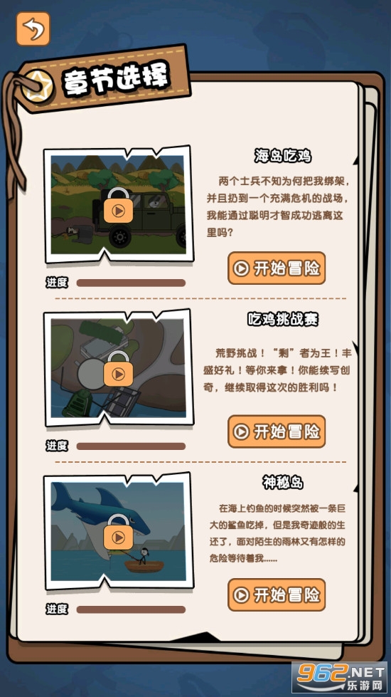 一款轻松有趣的休闲解谜闯关游戏,在这里你将面对各种危险的情况,选择合适的选项来不断的前进,最终成功逃亡吃鸡,游戏还有着多种章节可以选择,游戏的操作简单容易上手,推荐给喜欢休闲游戏的玩家。
