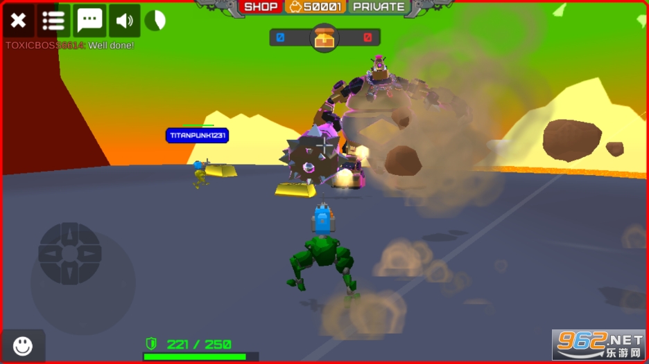 玩家将会被传统到同一张地图上进行对战,你需要驾驶着机甲加入到这场大乱斗当中,机甲分为远程射击和近战肉搏模式,可以根据具体情况随意切换。