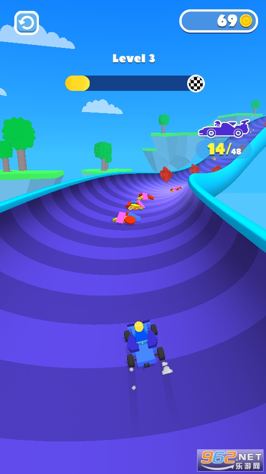 非常有趣的一款竞速类的休闲游戏,玩家在游戏中需要快速的收集和你同色的物品把你的车车修好,争取率先出发把其他人甩在身后,尽量少碰触障碍物,喜欢的话就快来下载挑战吧!