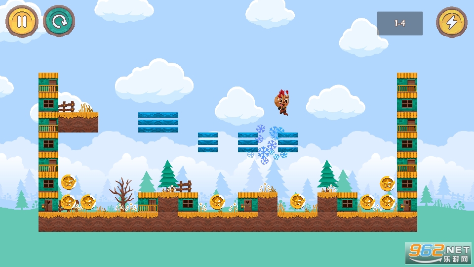 触摸并按住屏幕的左右两侧;您可以控制不停跳的核桃人。克服障碍,收集您在关卡中看到的所有金币,并完成关卡。如果您有足够的金牌,可以禁用一些障碍!