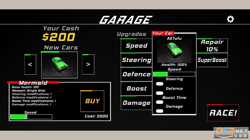 刚开始时,作为联盟中的一名新车手,车库里只有一辆旧的AETofu赛车,这将很难生存,但是通过驾驶技巧和使用武器的良好瞄准,您可能能够赢得足够的现金用于新车,新车升级,终于爬到了最大的联赛之巅!