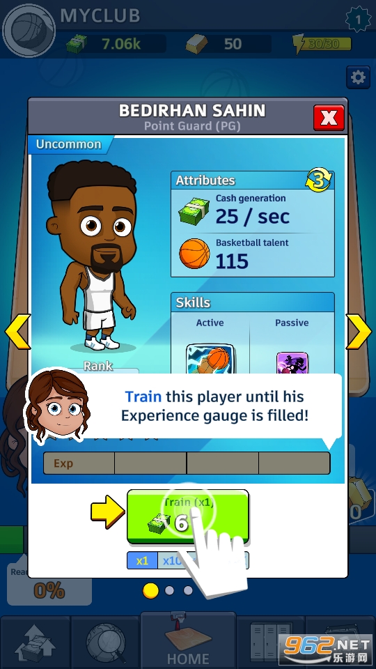 训练球员,提升他们的篮球技巧(投篮、传球、带球、防守...)以创造更多价值和收入