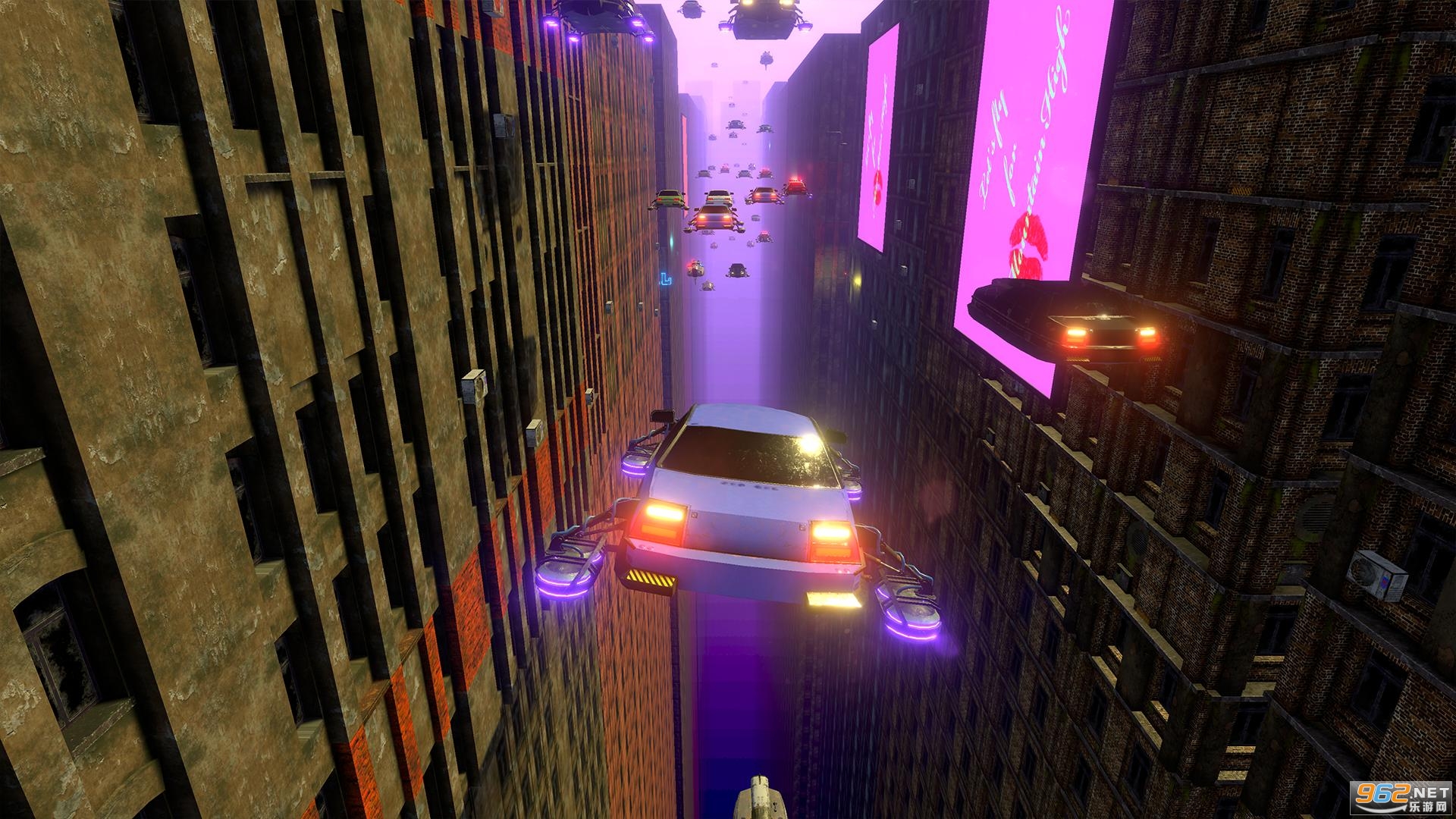 《赛博朋克赛车:飞行赛车》是街机赛车类型的新世界。驾驶未来的飞行汽车,参加令人眼花缭乱的比赛,您不仅可以从侧面超车,还可以从下方或上方超车。