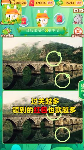 有海量的关卡等着我们去挑战,在时间走完之前找出所有的不同才能领取到红包,观察力、耐力、运气都比较重要,有时候很容易的就能发现好几处不同,有时候你如论如何都找不出来,所以玩这个还是需要一点点运气的。