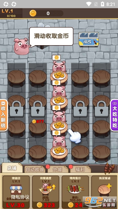 这是一款食物题材的模拟经营游戏。玩家需要利用食材制作各种各种的烧烤来吸引顾客。通过挑战关卡,完成任务来赚取大量金币,扩大店铺的规模。游戏玩法轻松简单,画面生动萌趣,让玩家在享受店铺经营的同时获得更多的乐趣。