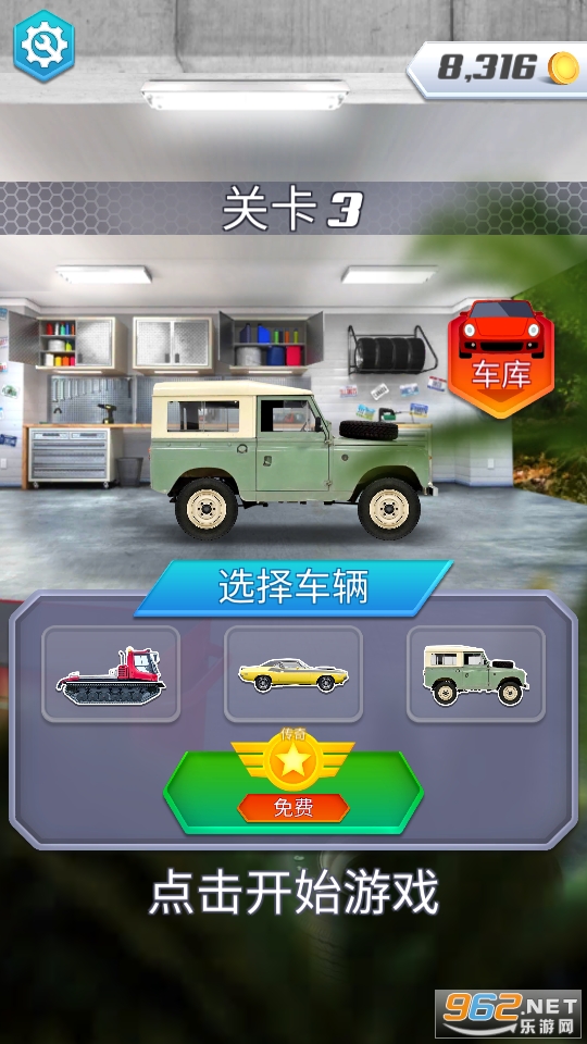 只需要快速的对交通工具进行选择就可以了,车库中的所有车辆都会随着游戏的进程逐步解锁,比较考验玩家的反应能力,尽量以更快的速度到达终点吧!