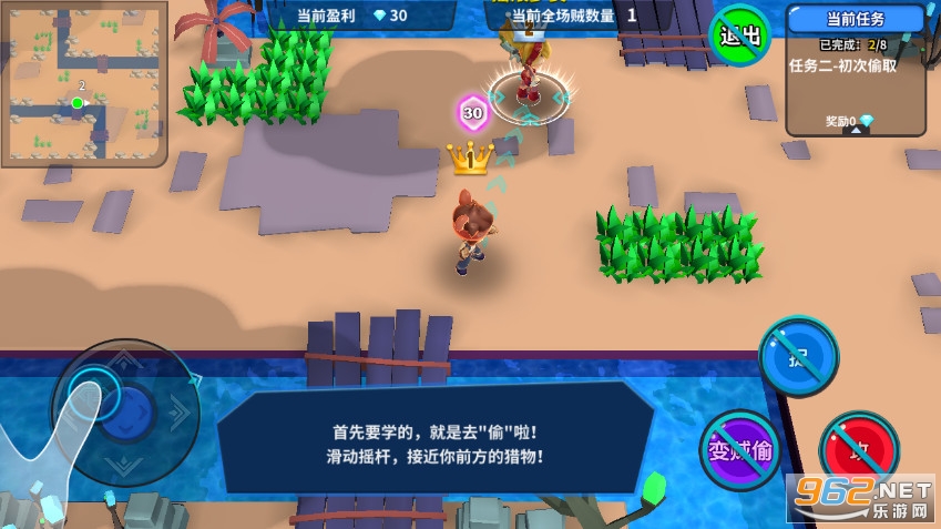 趣味的多人竞技游戏,玩家可以解锁各种英雄去进行体验,滑动屏幕控制角色移动,可以使用偷窃技能去偷窃钻石等物品,可以点击变身在偷窃贼和好人之间变换,喜欢的朋友可以下载试试。
