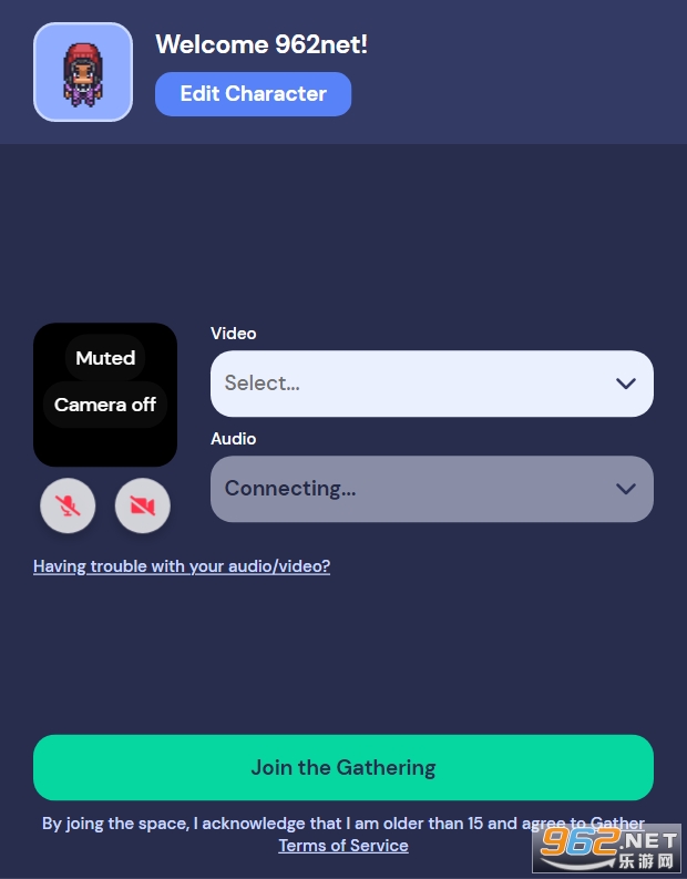 当然这个角色就是代表你自己,你可以选择开启麦克风,和视讯镜头,确定后就可以按下join the gathering!