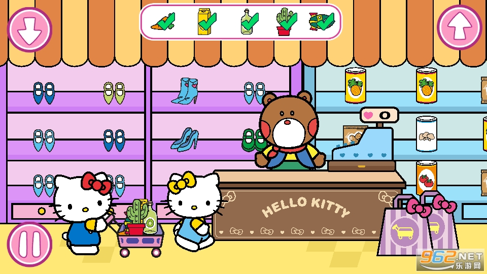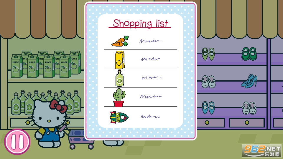 和凯蒂猫一起自由的逛超市吧,超可爱的卡通风格画面,玩家在游戏中需要完成各种购物的任务,按照购物清单购买所有你需要的物品吧!