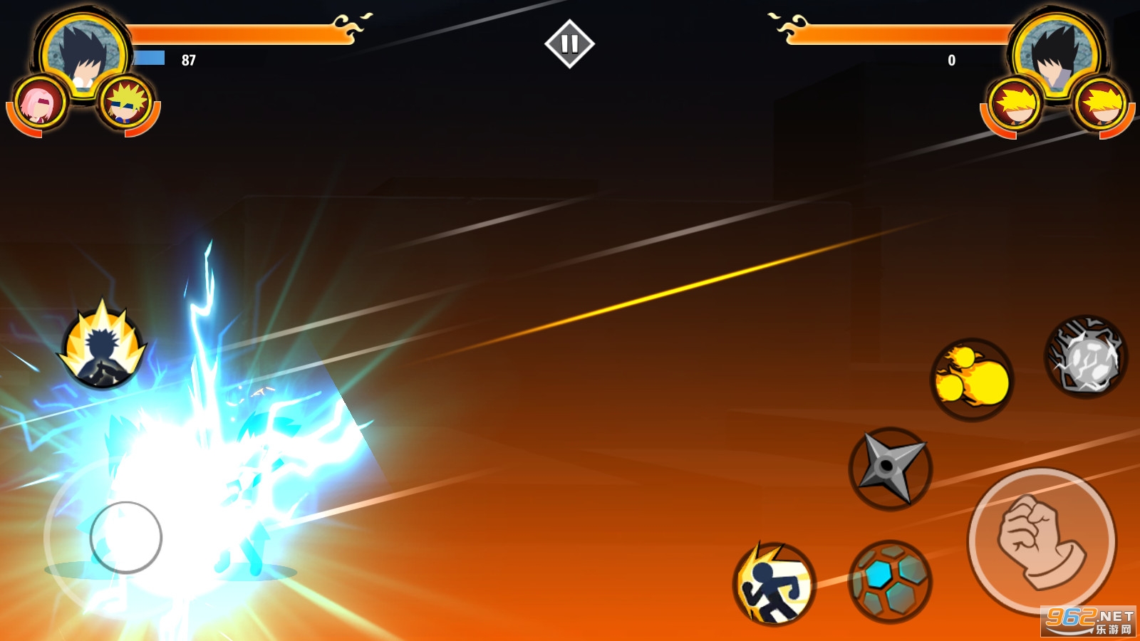 《火柴人忍者3v3竞技场》是一款火影题材的格斗对战游戏,游戏中玩家将控制一个个熟悉的忍者来进行对战,你可以自由的进行切换,使用不同的人物进行作战,游戏中还原了各种绝招奥义,赶快下载体验吧!