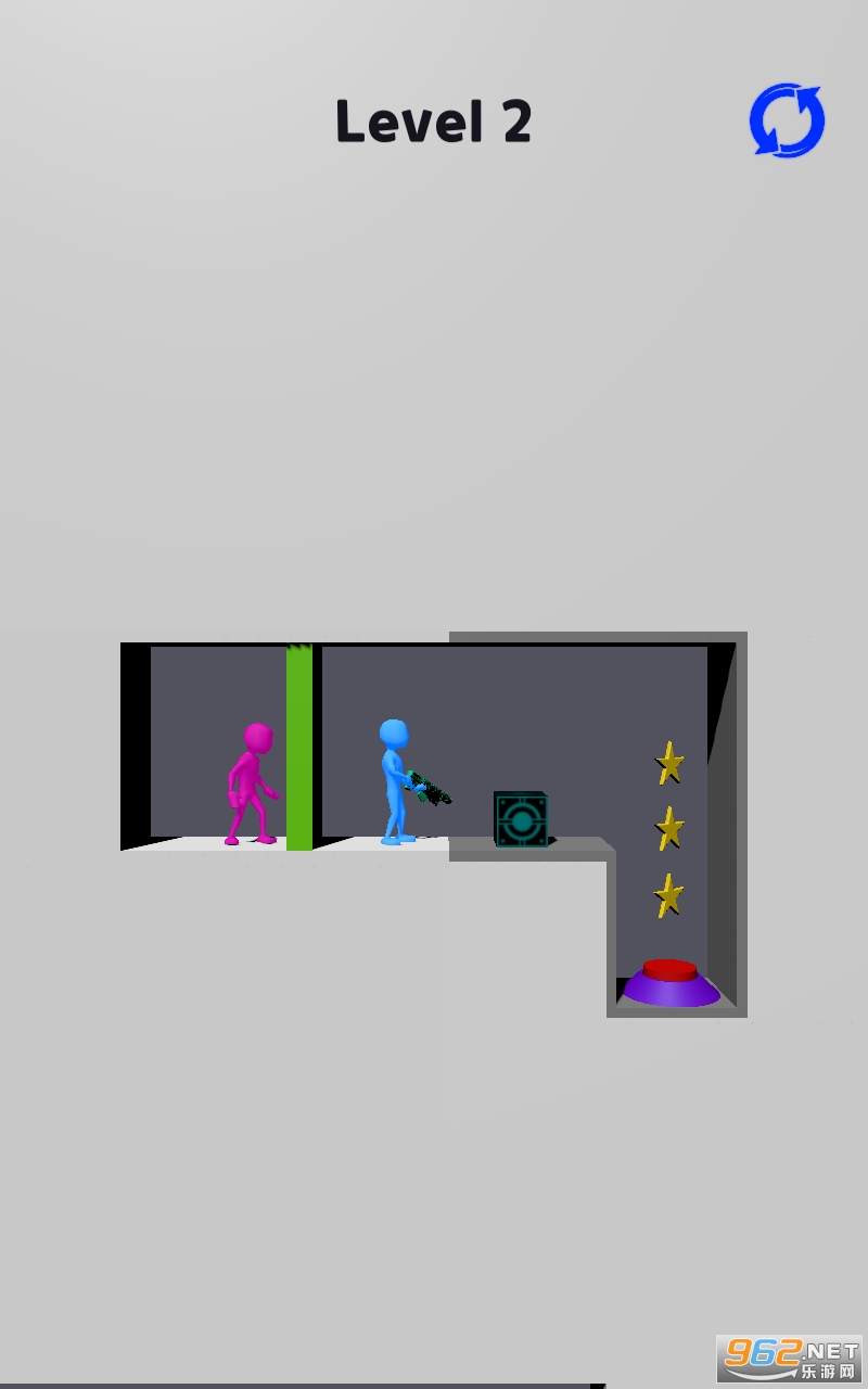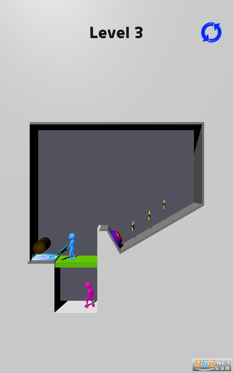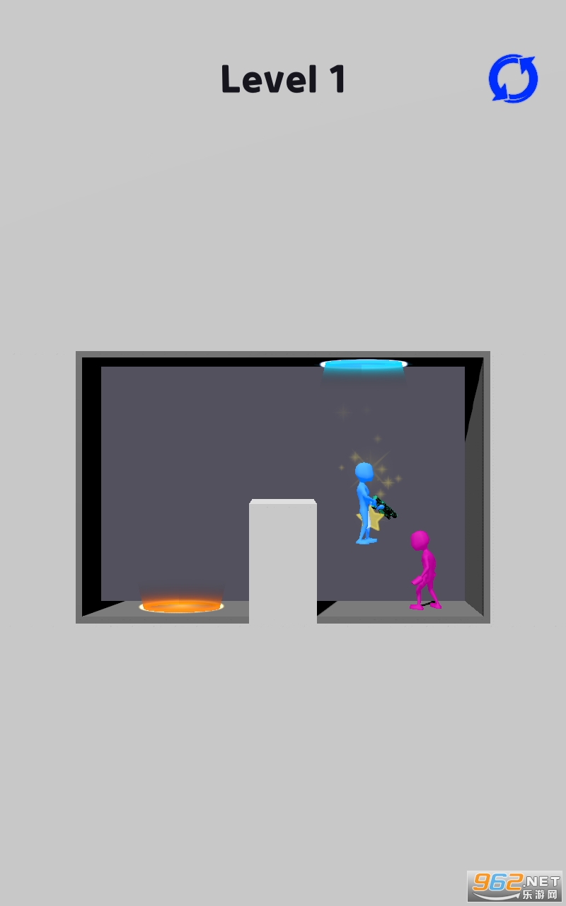 2、滑动屏幕拖动瞄准辅助线,放手制造出一个传送门,完成闯关。