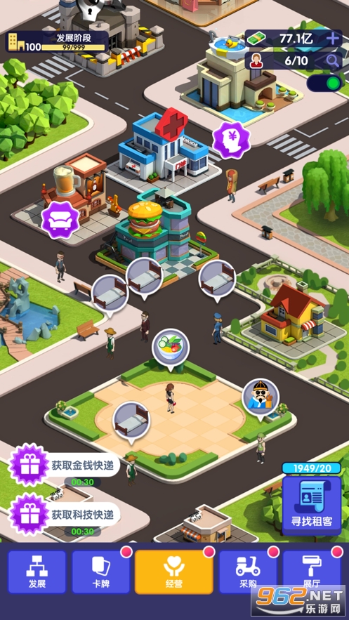 2.模拟经营:自由控制城市的发展,建造多种多样的出租屋以及服务型建筑,比如餐厅、酒吧、电影院、服装店、洗浴中心、培训机构、医院等等,囊括衣食住行娱乐多个领域。从最开始只有一间出租屋,发到到应有尽有的繁华大都市。