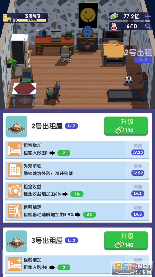 很多的朋友都梦想成为包租婆包租公,轻松生活,本款游戏中你将成为一名房东,可以解锁各种家具,设计房间的样式,出租给其他人,赚取租金,可以购买更多的房子来进行出租,喜欢的朋友可以下载试试。