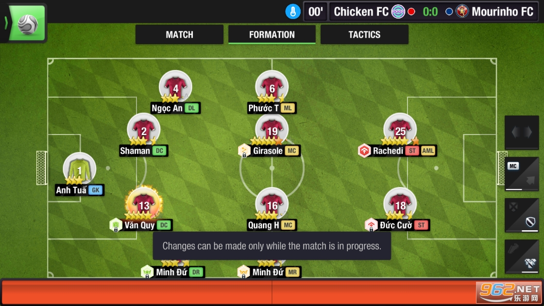 然后,根据这样的安排,需要派出8个球员,其中MC 既是中场又是攻击,DMC既是中场又是防守,在加其他球员凑齐8个,可以获得各种奖励。