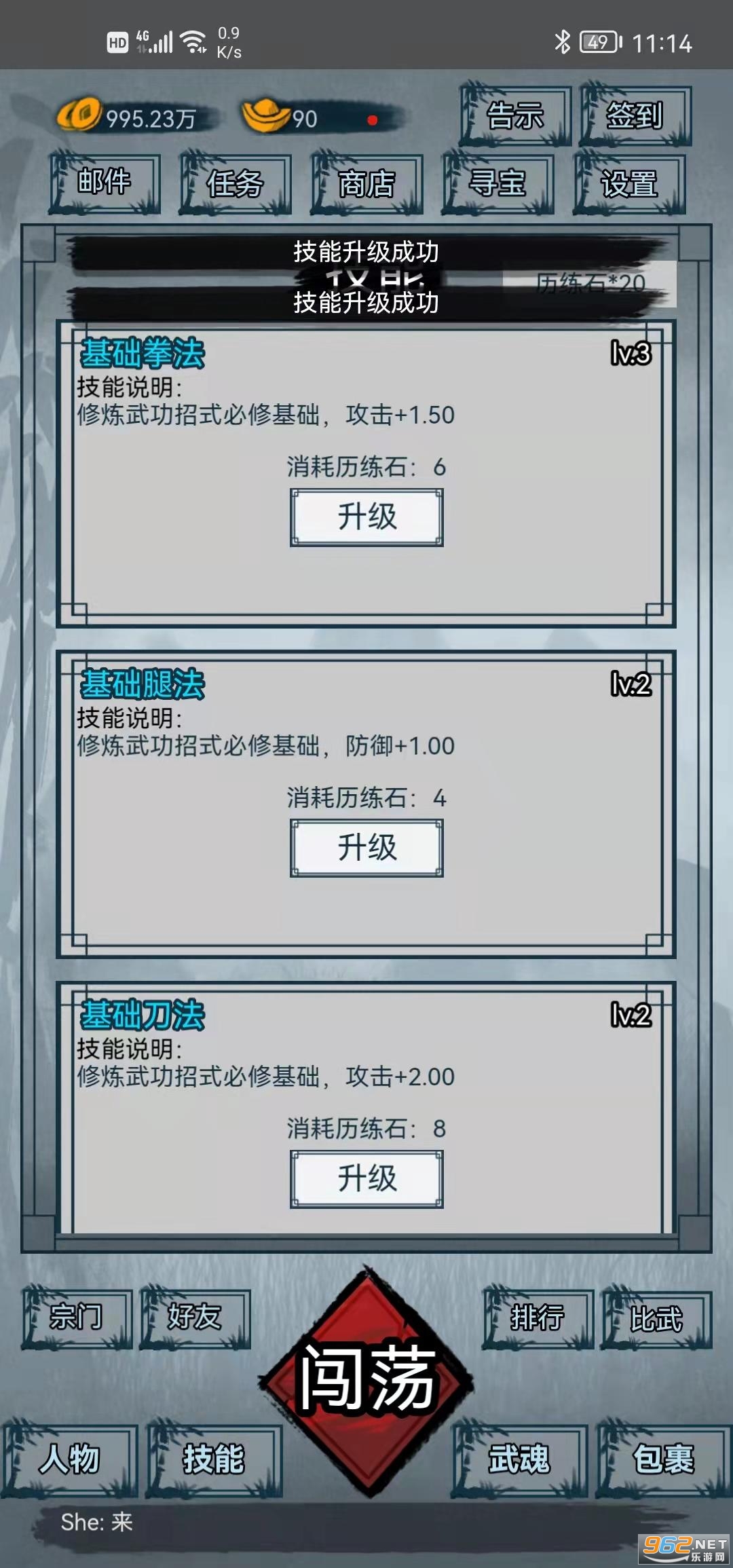 3、内容丰富,玩家可以加门派,学功法,升境界,同时你也可以打怪升级,解锁装备等,来这个江湖进闯荡吧!