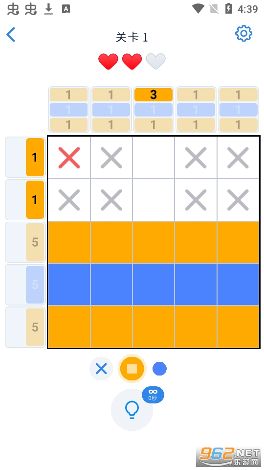 -如果认为方块不需要上色,就用X标记出来。