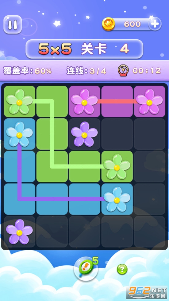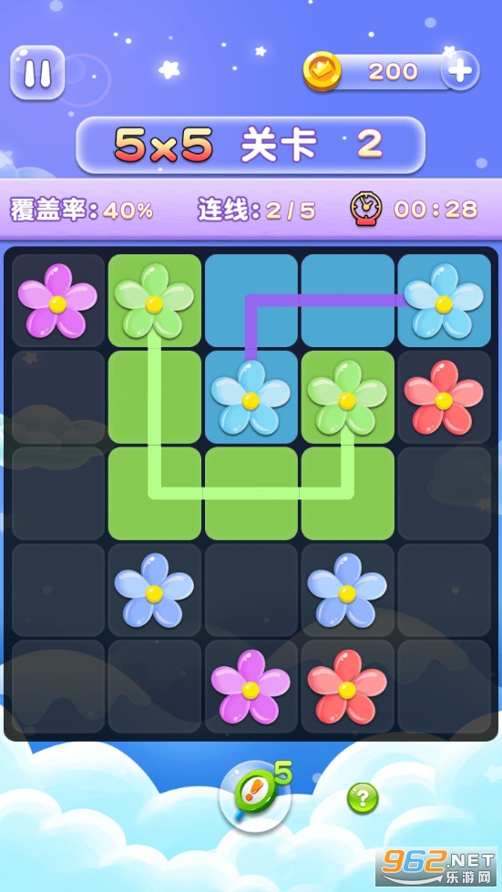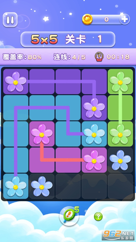趣味的益智闯关游戏,游戏规则简单,需要连接相同的花朵而且线条不能交叉重叠,需要覆盖率达到百分之百,越短时间完成挑战越好,关卡越往后将会越难,喜欢的朋友可以下载试试。