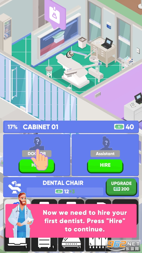 空闲的牙医是一款经营牙医诊所的游戏,选择这条街最适合开诊所的位置开始经营,玩家可以聘请医生和护士来帮助你为患者诊断。一个漂亮的前台小姐姐很重要,你需要雇佣瘦瘦高高的小姐姐来为顾客提供指引和后续的问询服务,让你的诊所服务更加受欢迎。