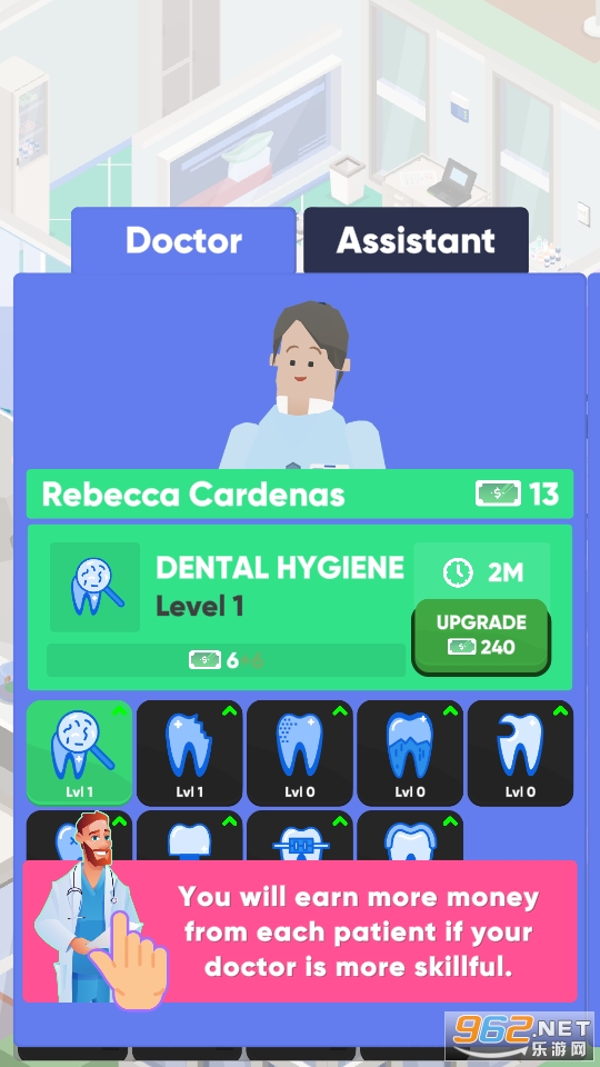 《空闲的牙医游戏》是一款非常有趣的以放置玩法为核心的休闲游戏,玩家在游戏中需要经营好自己的诊所,不断的完善诊所中的一切,雇佣更多的医生以及助手。适合用来打发时间,喜欢的话就快来下载吧!