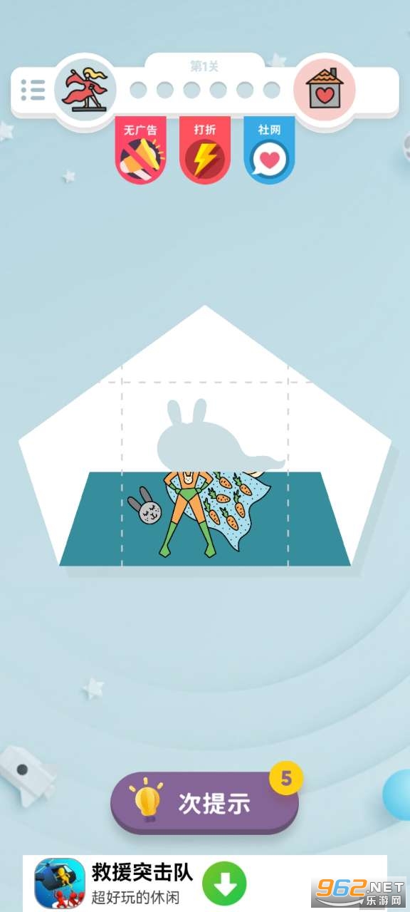 一款有趣的益智闯关游戏,在这款游戏中每个图案将被折叠组合成为一个完整的形象,你需要找到正确的折叠顺序,游戏的玩法轻松有趣,同时还有着超多可爱的图案等你解锁,推荐给喜欢休闲游戏的玩家。