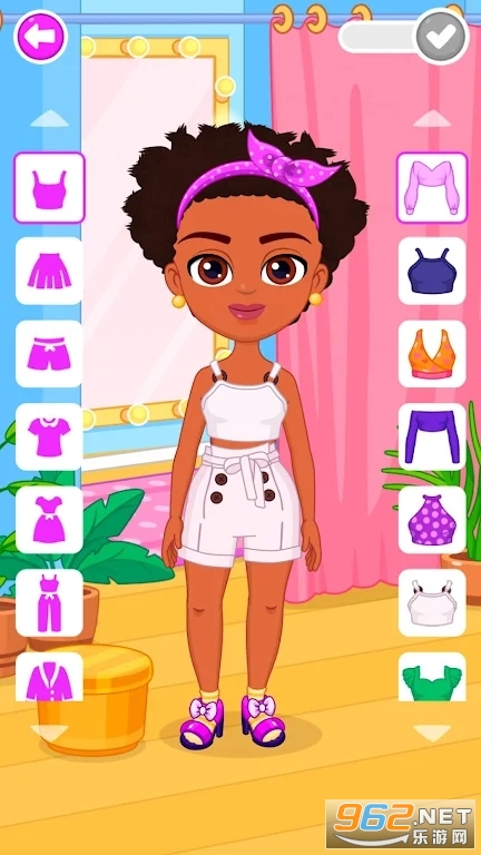 试试自己作为造型师。为女孩选择时尚的衣服。这里有很多选择。试穿时髦的上衣、短裤或裙子。