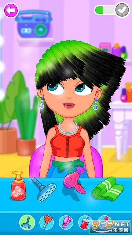 你有没有梦想成为一名理发师?把女孩的头发弄好。您将拥有所有必要的工具来执行此操作。用剪刀剪她的头发,然后用吹风机给她定型。您还可以选择化妆品来为您的模特化妆。使用眼影、口红和美丽的睫毛,让你的女孩成为真正的淑女。