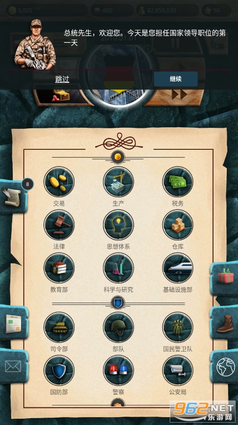 非常好玩的模拟游戏,玩家将扮演一个国家的总统,在游戏里面体验总统的日常工作,制定不同的决策,管理自己的国家,通过不同的手段,将你的国家发展壮大!
