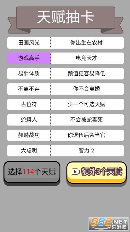 3、无尽的抉择,你可以自行选择多种不同的天赋属性养成,体验百味人生。