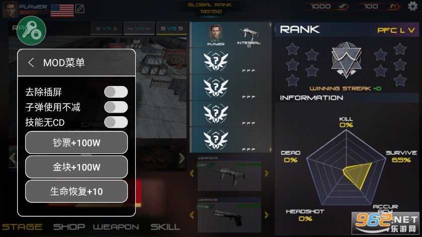 趣味的3D射击冒险游戏,有着丰富的武器系统,可以使用手枪、狙击、匕首等武器去战斗,小编带来的是CS反击破解版,内置修改器,有着大量作弊功能可以使用,有需要的朋友可以下载试试。