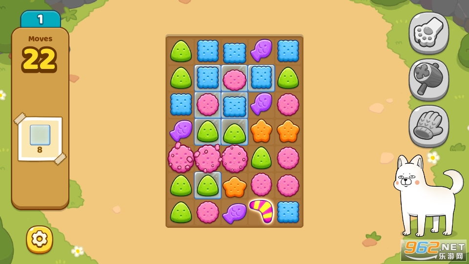 2、有趣的剧情设定,狗狗拆家,铲屎官在后面收拾,挑战三消任务,替换家具。