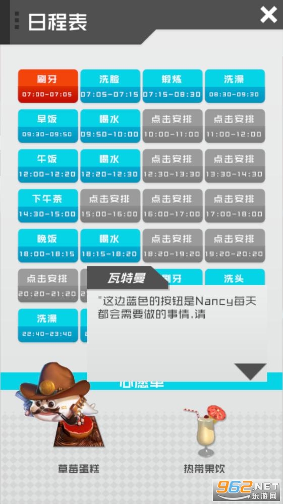 哦!记住要为她准备每天的食物、饮料和生活必需品,否则她就要罢工了。另外,她每天都会做运动,当然,运动后,洗澡是必要的,不要幻想。