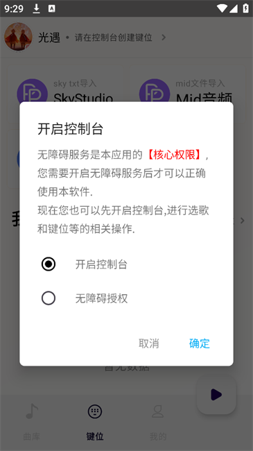 目前本应用支持导入光遇SkyStudio的txt格式的乐谱,Midi格式的文件,可以选择以下两种方式的其中一种进行导入