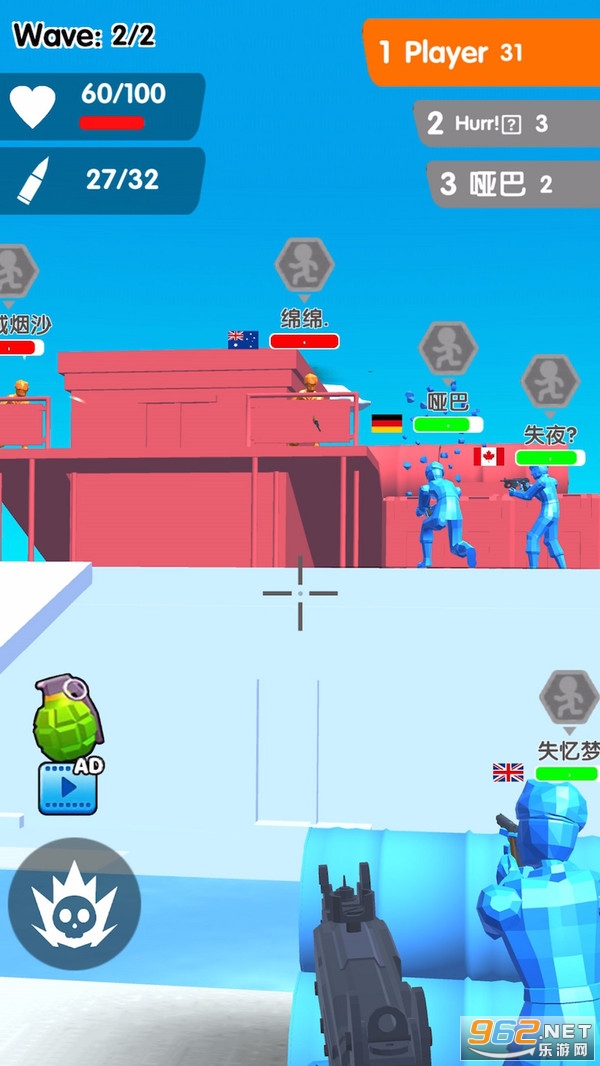 快来和队友们一起射爆敌人吧! 手枪,机枪,步枪,狙击枪应有尽有。 还在等什么,快来加入吧。
