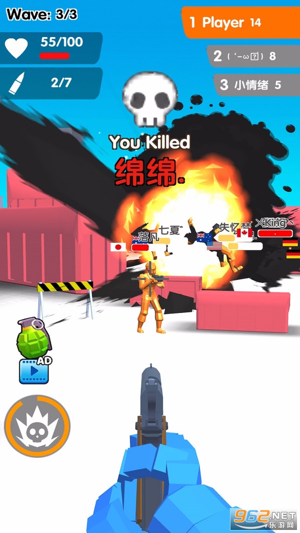 1.玩家仅需一根手指即可控制角色射击,爆头,狙击和手榴弹投掷。