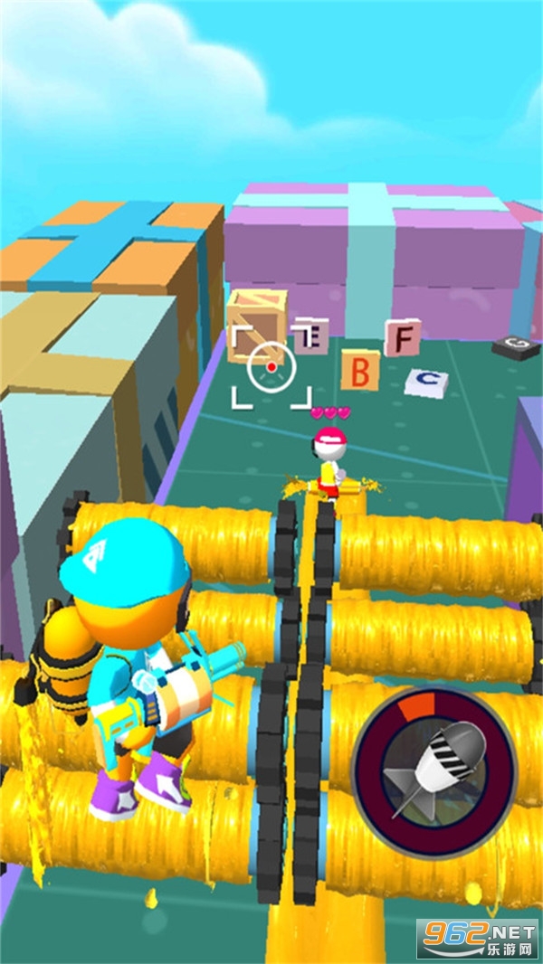《给点颜色瞧瞧游戏》是一款画面清新的控制橡皮人冒险的多人竞技手游,游戏中玩家将控制橡皮人在各种平台冒险,这里有着多样的场景,玩家需要利用手中的喷枪去将场地染色,可以利用炮弹等去攻击其他敌人,在结束的时候谁染色的最多获得胜利,就是看谁占领的地盘最大。