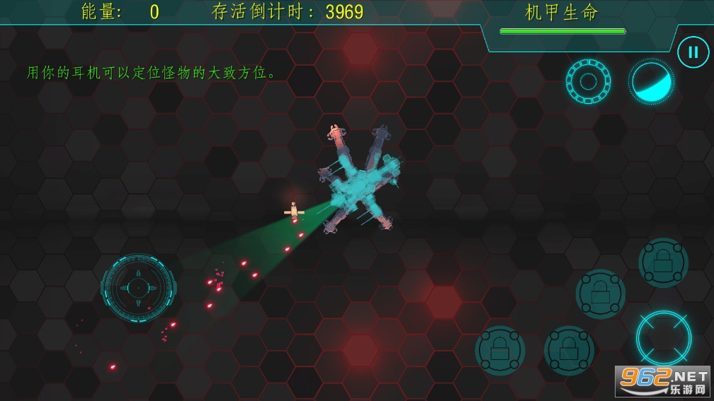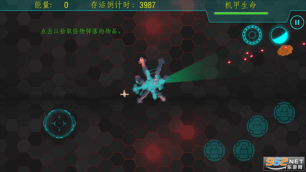 《营救4000秒游戏》(4000 Sec lifeline)是一款画面清新的控制机甲战斗的冒险游戏,游戏中玩家将控制一架机甲去战斗,注意机甲的位置是固定的,可以滑动屏幕旋转机甲来攻击不同方向的敌人,玩家的任务就是抵御敌人4000秒的进攻,可以收集能力,解锁各种强力的武器来对战。