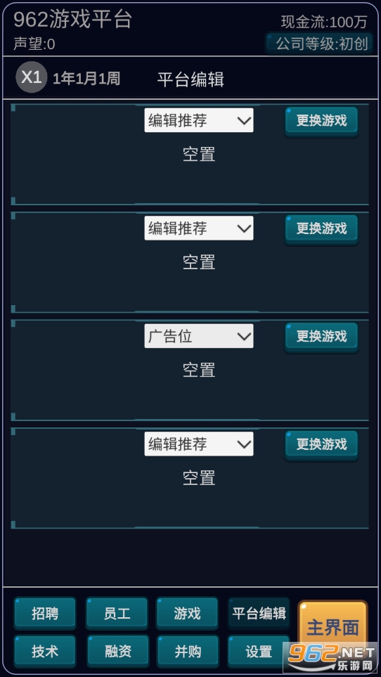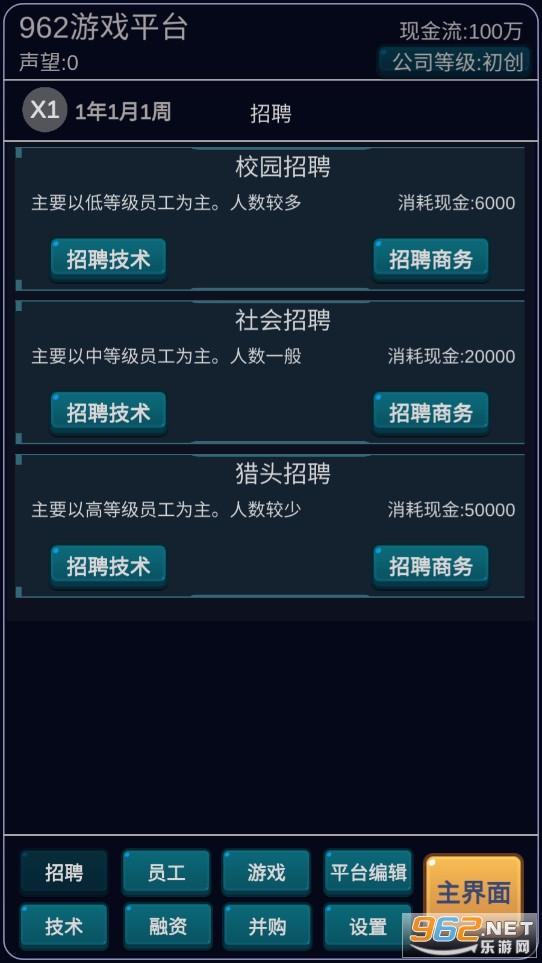 招募员工,升级技术,洽谈代理,接广告投放,推荐游戏,融资,并购,吸引更多的玩家和游戏。在这里你能体验一个游戏平台的一步步发展,成长。