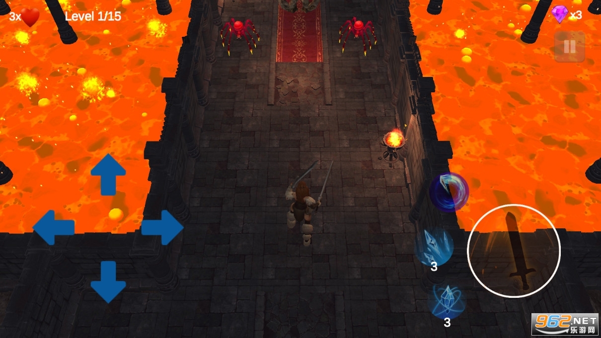 操控人物灵活走位躲避敌人的攻击,作为一名英雄战士,你拥有北方特有冰寒技能,冻结、易损、还有群体攻击,每个技能仅能够释放三次,注意使用的时机和技巧!细心留意观察敌人的破绽所在,及时予以击杀!