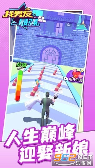 《我男友最强》是一款超级好玩,充满了欢乐的魔性跑酷闯关休闲小游戏,精致的场景和画面设计,为你带来机制的游戏体验,酷炫的角色,丰富的服装和道具,玩家需要帮助游戏里面的男生,穿越关卡中层层的障碍和陷阱,顺利到达终点,迎娶新娘,展现自己的超强的男友力!