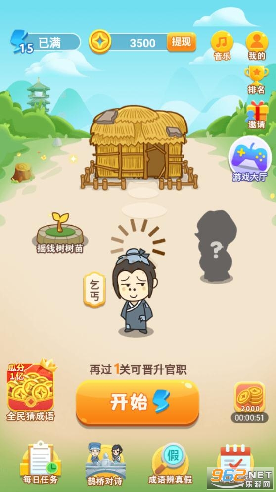 2、猜成语通关五关,击杀六位将军,解锁各种豪华奖励;