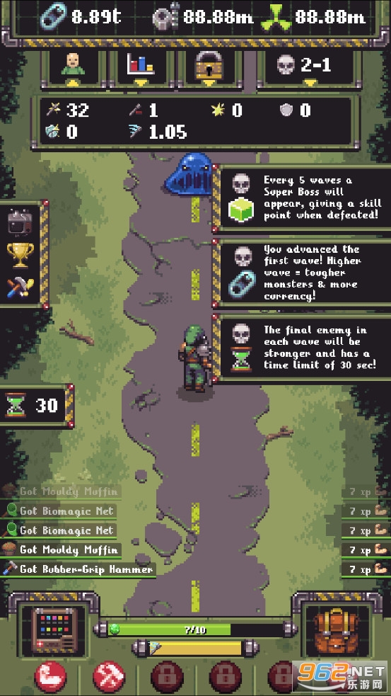 一款有趣的休闲放置闯关游戏,在这款游戏中你将一路进行战斗获取各种不同的材料,升级你的装备来应对不同的敌人,游戏的操作简单容易上手,还有着多样的玩法等你体验,探索末日的秘密,推荐给喜欢放置游戏的玩家。