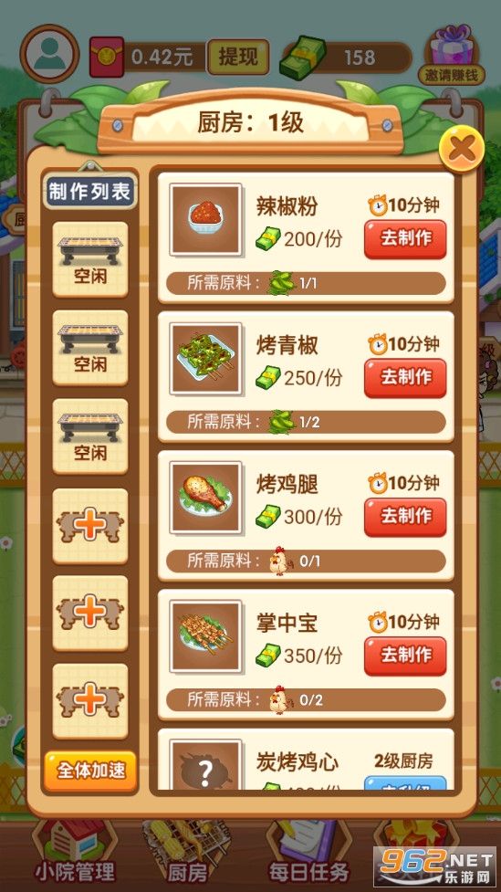 3、有多不同种类的烧烤可以解锁,等级越高就能为你带来越多的收益。