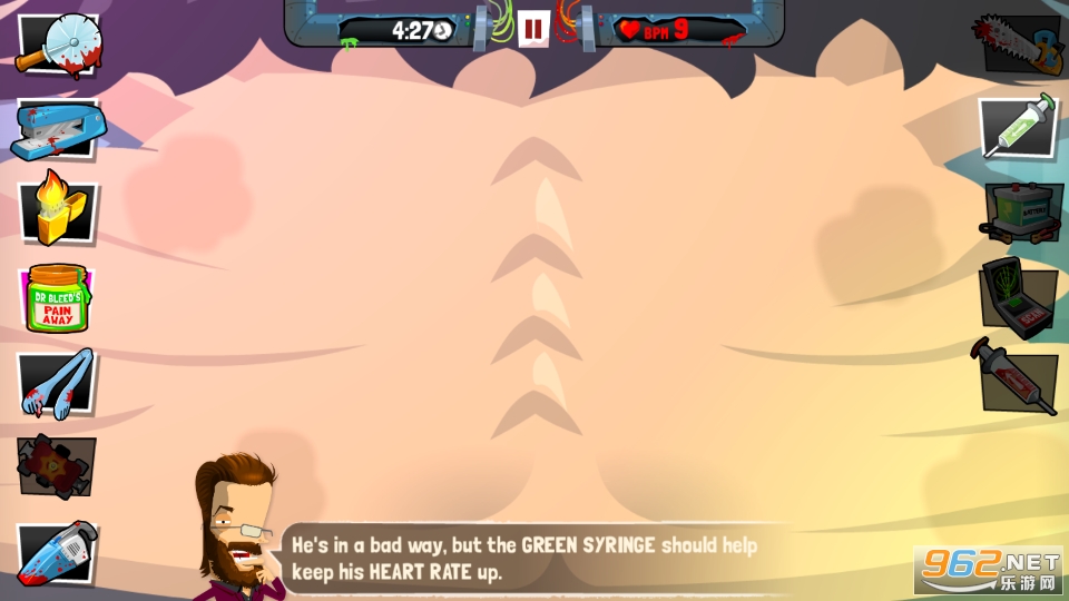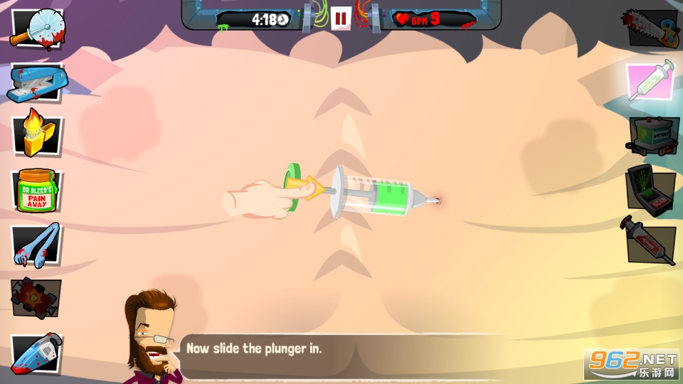 使用奇怪的医疗工具,各种奇葩的非手术工具来治疗病人,病人都是各种各样的受伤,令人眩晕,游戏场景多样,非常刺激。
