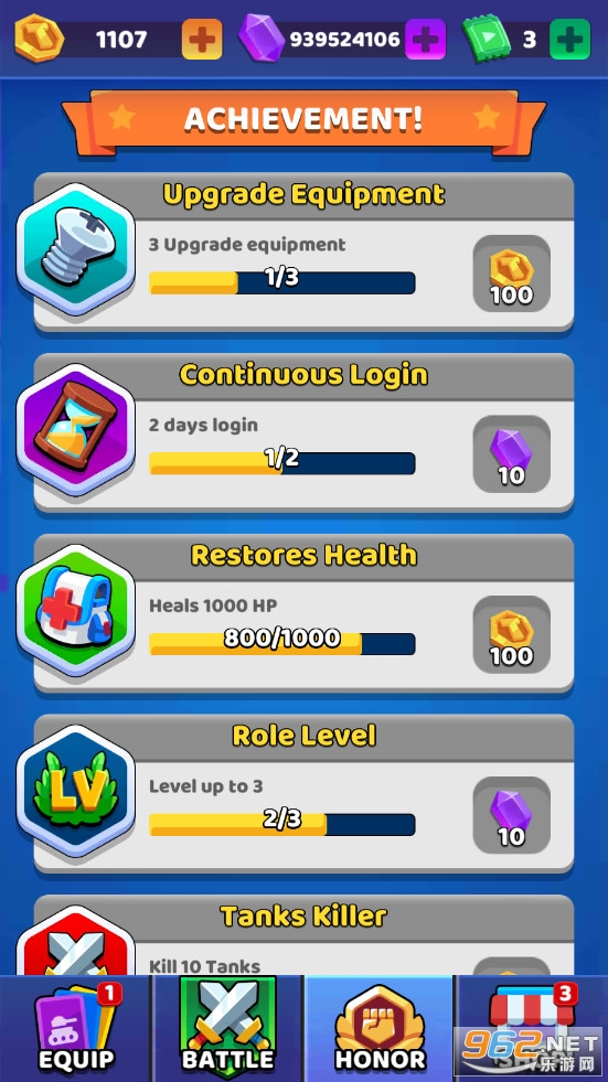 您可以在战斗中获得升级细分。始终明智地匹配和升级它们,以增强您的力量并获得荣耀。