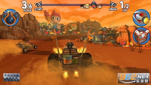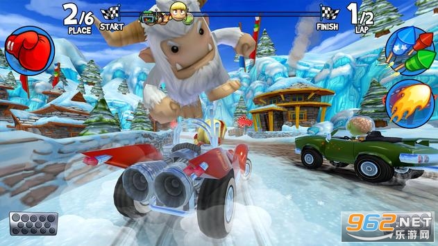 BBR2中有超过45种强化件等着玩家去发现和升级,为经典卡丁车比赛增添了战略深度。利用真实世界没有的特殊技能,如:“闪电链”、“甜甜圈胎”、“加速果汁”和“杀人蜂”,你可以创建自己的自定义强化件。