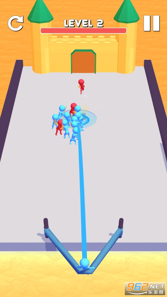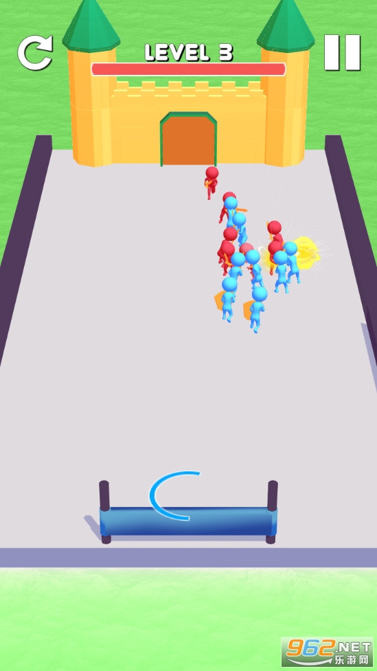 游戏玩法比较简单,滑动屏幕拉伸弹弓将小人弹射刀关卡中特殊的数字圆圈中,可以获得各种不同的效果,比如增加士兵个数、巨大化士兵、盾战士等等,喜欢的朋友可以下载试试。