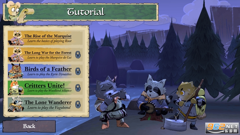 玩热门桌面游戏的数字改编版。根是一款冒险和战争游戏,其中2到4个玩家争夺对广阔荒野的控制权。