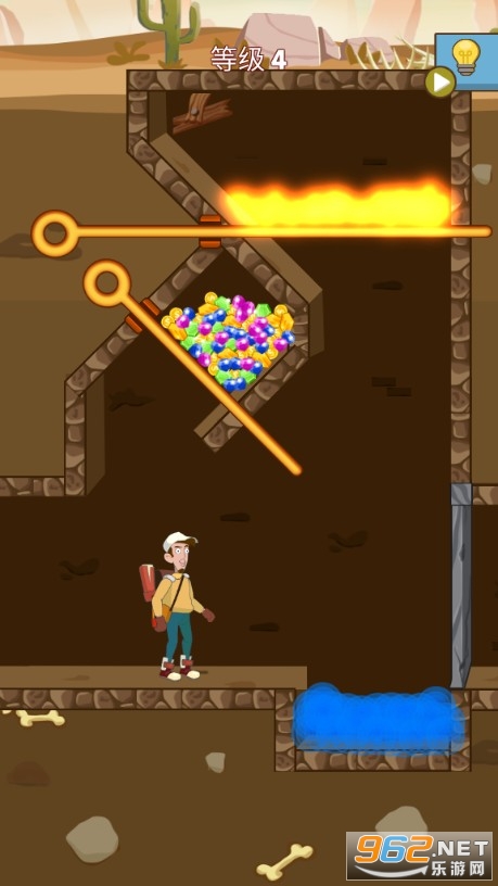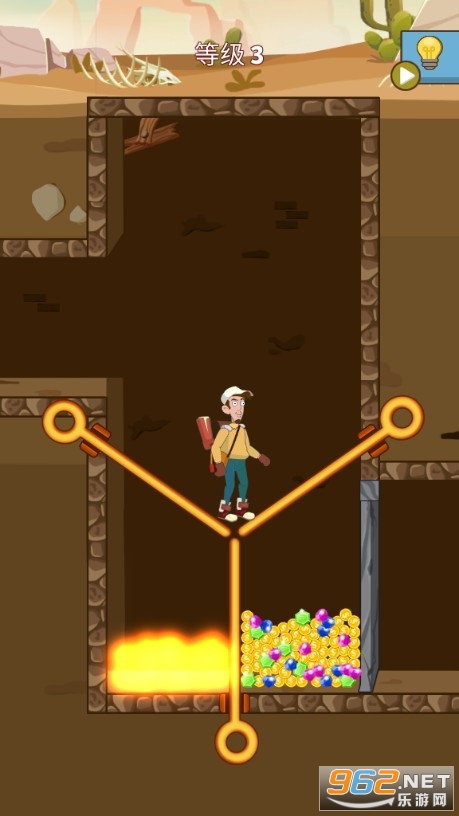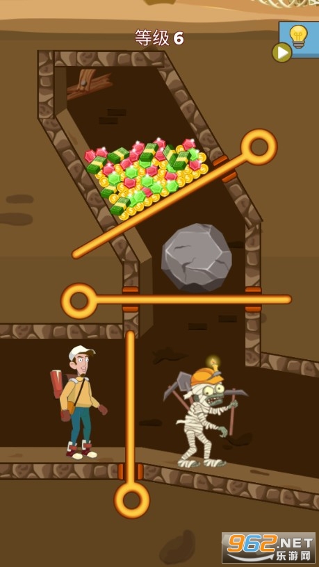 《拉大头针》是一款烧脑的益智解谜闯关游戏,正确拉针才能成功闯关,有些时候需要正确拉针获得宝物,有些时候需要去营救被困的人,认真观察,首先要排除各种危险难题,排除难题之后再想办法拉针获得宝物,玩这款游戏需要有一定的智商才行。