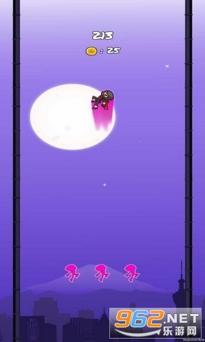 2、游戏的角色是一个可爱的忍者,玩家的目标是操控忍者向上飞奔得越高越好。