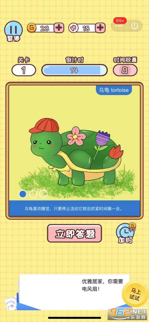 一不错的解谜游戏,在这里将挑战一个个有趣的关卡,通过观察和思考找到正确的答案,游戏的玩法轻松有趣,同时游戏中还有着时间的限制,需要你的大脑快速运转,得到最终的答案,推荐给喜欢休闲游戏的玩家。